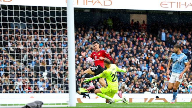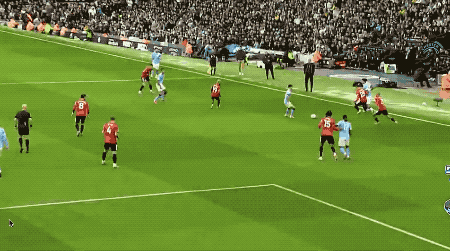 1分钟后,曼城率先取得进球,多库轻松过掉卢克肖,第二次传中转化为助攻,福登头槌破门。