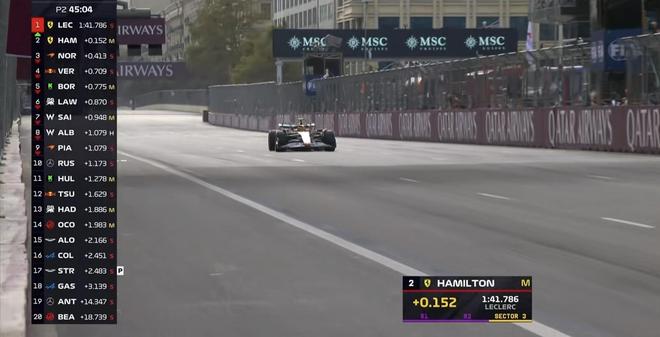 北京时间9月19日,F1阿塞拜疆大奖赛第二次练习赛结束。汉密尔顿全场最快,勒克莱尔、拉塞尔位居二三。安东内利第4,贝尔曼第5,维斯塔潘第6,劳森第7,奥康第8,阿尔本第9,诺里斯第10,皮亚斯特里第12,角田裕毅第14。