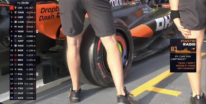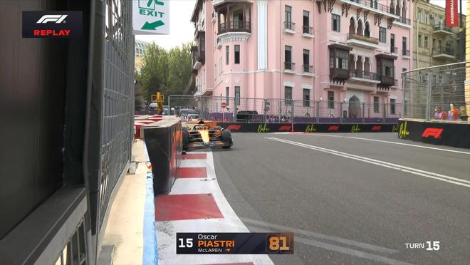 皮亚斯特里也在15号弯出弯处蹭墙,他向车队报告赛车存在轻微受损的情况;