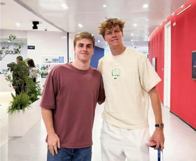 WTT欧洲大满贯冠军得主莫雷加德将作为嘉宾为本场比赛进行挑边,此前莫雷加德现场观战中网比赛,并和头号种子辛纳进行了合影。