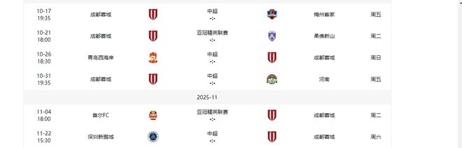 成都蓉城最后四轮2主场2客场,对手是梅州客家、青岛西海岸、河南队、深圳新鹏城