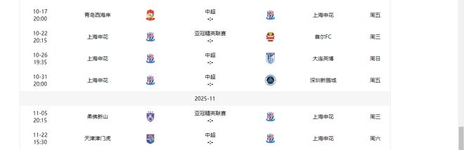 上海申花最后四轮2主场2客场,对手是青岛西海岸、大连英博、深圳新鹏城、天津津门虎