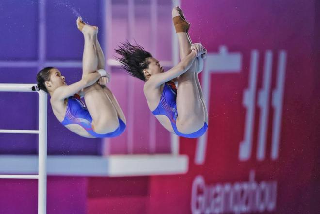全红婵/王伟莹在比赛中。南都N视频记者 黎湛均 摄